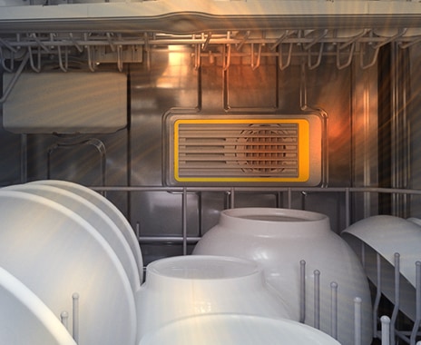 Dry dishes effectively* every time with heated air enabled Smart Dry with AutoRelease™. It absorbs moisture and circulates high temperature air. It also intelligently adjusts the drying temperature and time to avoid wasting energy. And, when cycles end, the door opens for faster, better drying.