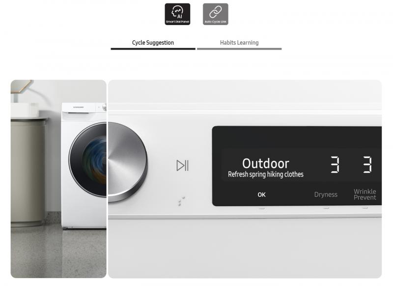 One dial for all your laundry needs. Samsung’s easy to use, AI Smart Dial simplifies your washer’s control panel, learns and recommends your favorite cycles,* and allows you to customize your cycle list, making laundry day a breeze.