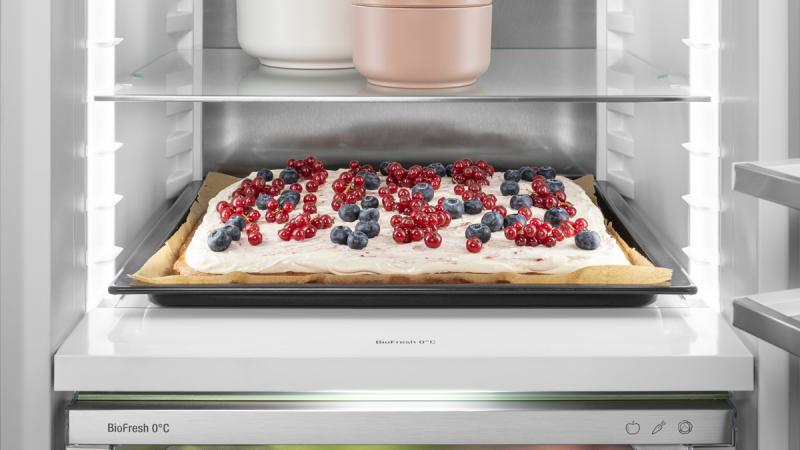 Do you want to keep that home-baked fruit pie fresh? Or maybe a prepared pizza to be baked later on? If so, simply slide your baking tray into your Liebherr – it has plenty of space for storing a baking tray. Really convenient – you can slide the baking tray in and out when the door is opened at 90°.