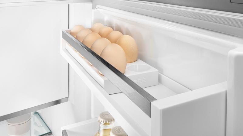 Do you like chicken eggs? So does your Liebherr – that's why it has the 2-in-1 egg tray. This not only provides space for up to 20 chicken eggs, but also for up to 24 quail eggs. The egg tray consists of an outer and an inner part which can be slid into each other in different ways. By turning the tray over, the quail egg holes can be used.