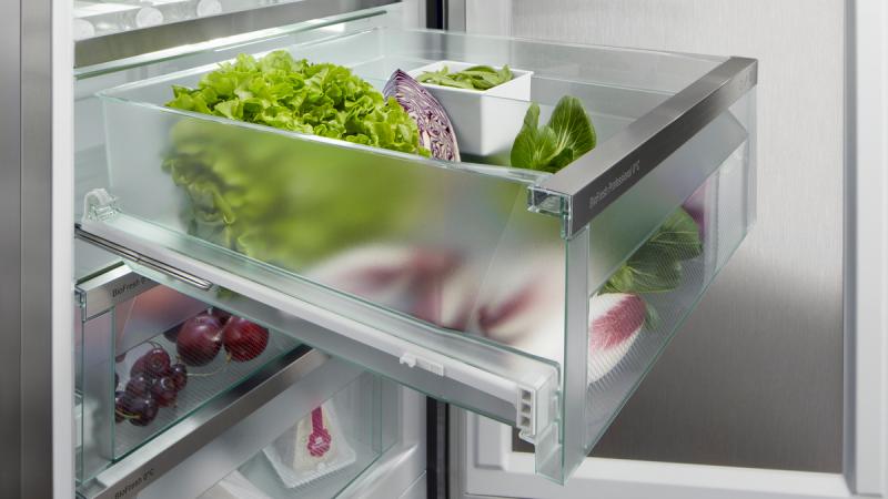 Look forward to opening your BioFresh drawers. And this is not just because of the fresh food – but also because opening is so easy, and closing is automatic and cushioned. The telescopic rails slide the safe gently towards you. And because these extend fully, you have the best overview of the contents.