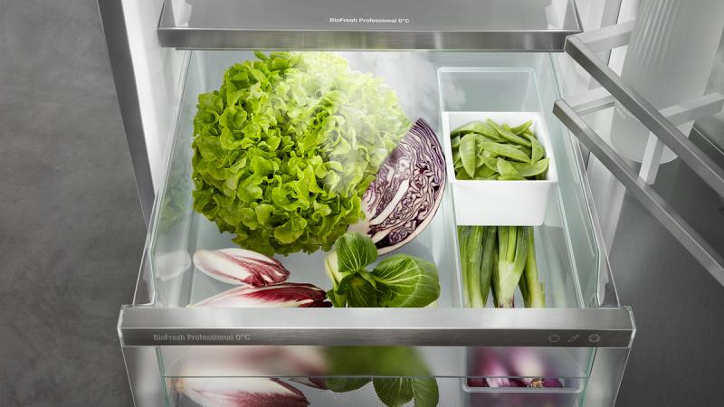 Crunchy salad and strawberries: the most delicate foods deserve a special place so they stay fresh longer – in BioFresh safes. In the Fruit & Vegetable safe the temperature is close to 32°F. Combined here with the constant humidity, thanks to the air-tight closure, unpackaged fruit and vegetables feel particularly at home. You do not have to adjust anything.