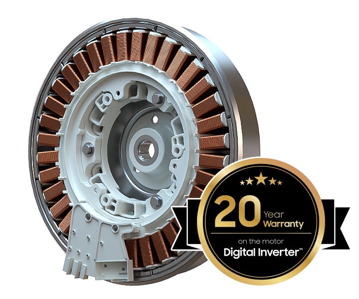 Purchase Samsung Washers with confidence and receive a 20-year warranty on the Digital Inverter Motor.
