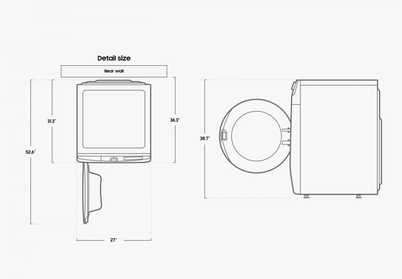 * Available on Android and iOS devices. A Wi-Fi connection and a Samsung account are required. ** Stores user data, preferences and usage patterns to suggest the most useful options. *** The user will be solely responsible for any consequence(s) that may result, including but not limited to any damage or harm caused by incorrect information provided by the user. **** The recommended washing cycle is only based on time and may not be appropriate based on the type of fabrics or stain level of the articles being washed. ***** A Wi-Fi connection is required at all times, which may increase energy consumption.