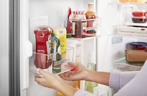 Make space for tall condiments and wine bottles in the door with bins that quickly and easily slide up or down, even when fully loaded.