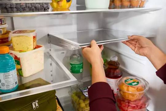 Get on-demand organization with a convertible Tuck Shelf. Simply push the shelf in to store larger items like prepared salads, thermoses and sports drinks, and pull back into place when you no longer need it.