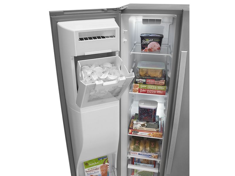 This model's Adaptive Defrost saves 6% more energy by monitoring when the compressor is running and defrosting only when necessary, resulting in improved food preservation and energy savings. As compared to previous Whirlpool® side-by-side models without Adaptive Defrost; based on 24-hour interval with refrigerator doors left unopened.