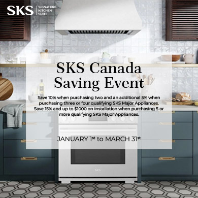 Save 15% and up to $1000 on installation when purchasing 5 or more qualifying SKS Major Appliances.