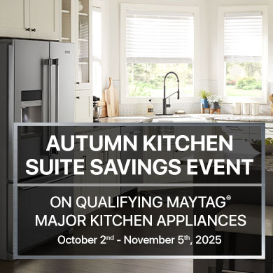 Save $150* with the purchase of 2 qualifying Maytag kitchen appliances