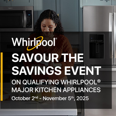 Save $300* with the purchase of 3+ qualifying Whirlpool Kitchen appliances