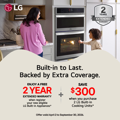 ENJOY A FREE 2 YEAR EXTENDED WARRANTY when register your new eligible LG Built-in Appliances*