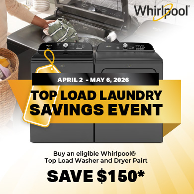 Buy an eligible Whirlpool Top Load Washer and Dryer Pair - Save $150*